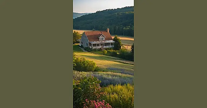Imagine trading in your alarm clock for the sound of birds chirping and swapping your crowded street for rolling hills! This beautiful country home is the ultimate escape. It’s like something out of a fairytale – a cozy farmhouse nestled in a sea of wildflowers, with enough space to build a giant pillow fort in the backyard (just promise you won’t roll into the field of flowers!). Seriously though, the golden light and the peaceful scene make it feel like home is where the heart is…and the heart is definitely here.