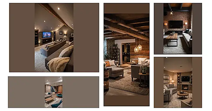 Step into this incredible ‘cozy basement,’ and you might just forget there’s a whole world of chores waiting upstairs – in the absolute best way possible! This isn’t your average, spooky dungeon; it’s a sleek, comfy hangout spot with couches so inviting, they basically have a magnetic pull. With plush pillows begging for a pillow fight (or just a really good nap), and lighting that makes everyone look like a superstar, this basement is practically screaming, “Come on down, put your feet up, and ignore your responsibilities for a bit!” It’s the perfect hideaway for those days when all you want to do is chill harder than a polar bear in a freezer.
