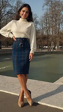 This outfit is perfect for those crisp fall days when you want to look stylish but still feel comfortable. The plaid skirt is totally on-trend and the white sweater keeps you warm without looking too bulky. Plus, the heels add a little touch of class, so you can rock this look for a casual day out with friends or even a date night! Imagine yourself walking around the park, feeling confident and ready to conquer the world.
