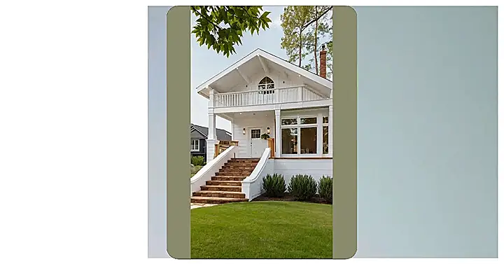Okay, picture this: You’re walking up to your awesome white cottage after a long day. Check out those stairs! They’re like a super-fancy brick runway leading to your castle (or, you know, really nice house). It’s so bright and cheerful, you’d almost need sunglasses, even if it’s cloudy! Plus, imagine chilling on that little balcony, waving to the neighbors or dramatically staring off into the distance like you’re in a movie.