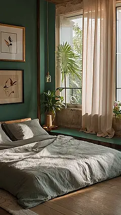 This bedroom is like a chill hangout spot for plants and humans! The green walls are totally giving off jungle vibes, and the comfy-looking bed is practically begging you to take a nap after a long day of classes. Imagine waking up surrounded by leafy friends – talk about a great way to start the day, especially if you’re not a morning person!