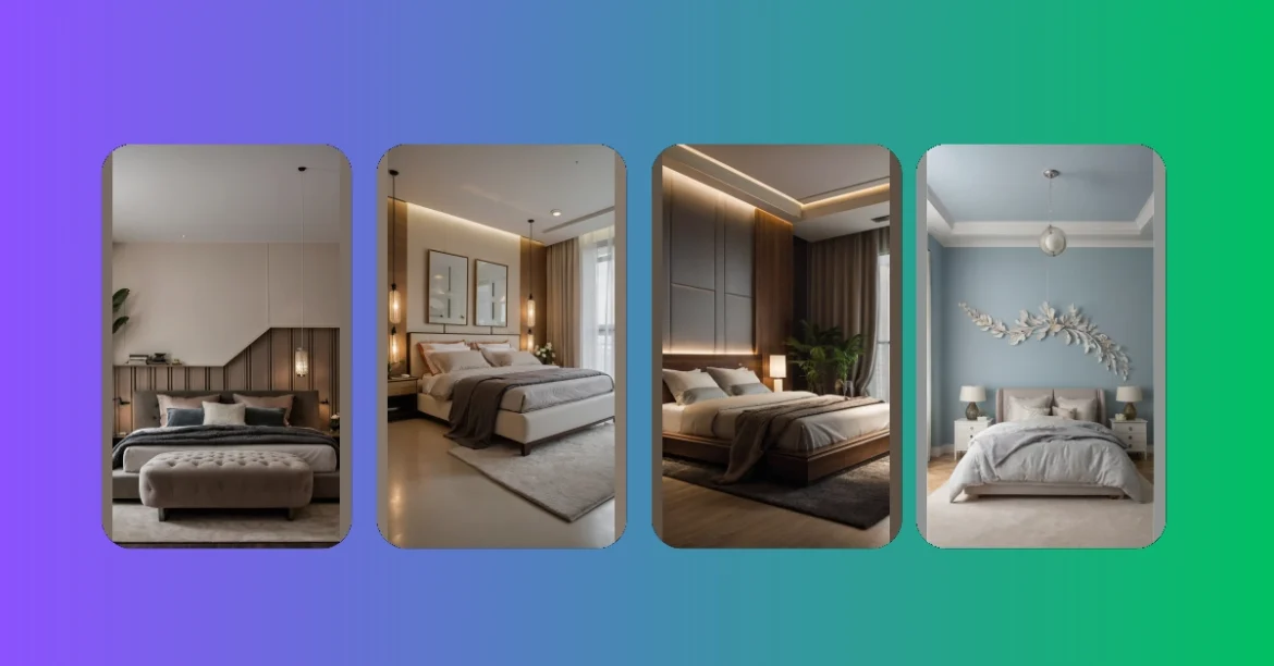 Imagine waking up in a bedroom that feels like a fancy hotel, but way comfier. The bedroom interior design in this picture is all about chilling vibes and looking super classy. Forget posters of your favorite band (unless it matches the color scheme, then go for it!), this room is rocking a chill blue, a super cool leaf decoration, and a big comfy bed that’s basically begging you to take a nap.