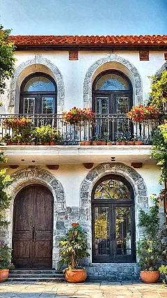 Who knew “small house design” could look this fancy? This place has more architectural swag than a medieval castle that just got a trendy glow-up. Peep those gorgeous arched windows and the balcony overflowing with flowers – it’s like this house read the memo on being cozy and cute, then decided to add a whole extra chapter on “how to look like a secret Italian villa while still technically being ‘small’ somewhere.” You could practically host a Shakespearean play from that balcony, or at least dramatically water your plants while pretending you’re royalty.