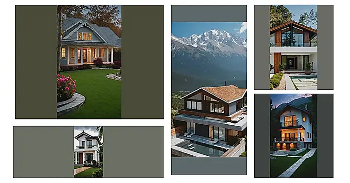 This house is like something straight out of a magazine! It’s sleek and modern, with lots of windows that let in tons of natural light. The wood siding gives it a warm, inviting feel, and the outdoor patio looks like the perfect place to relax and enjoy the view. With a huge backyard, you could even build a swimming pool to make it even more awesome! Imagine lounging on that comfy couch with a mountain view – pure relaxation!