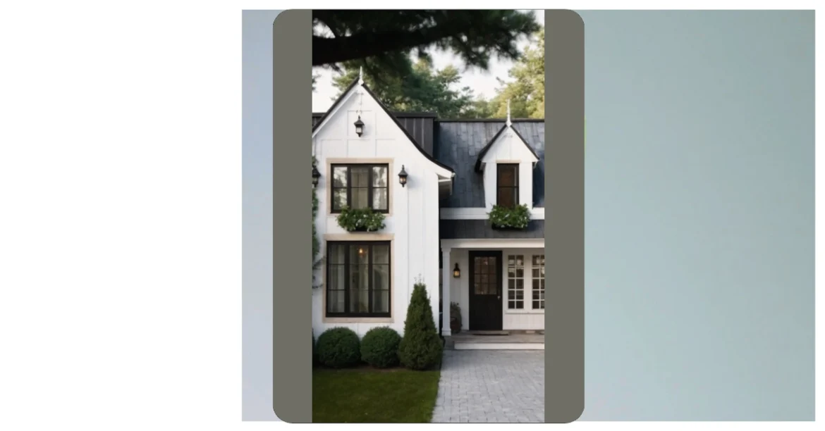 This house is cute as a button! It’s like a little dollhouse that someone forgot to make bigger. The white paint makes it look super clean and bright, like a fresh sheet of paper ready for a new story. The black windows and door add a little bit of mystery, like they’re hiding secrets from the outside world.