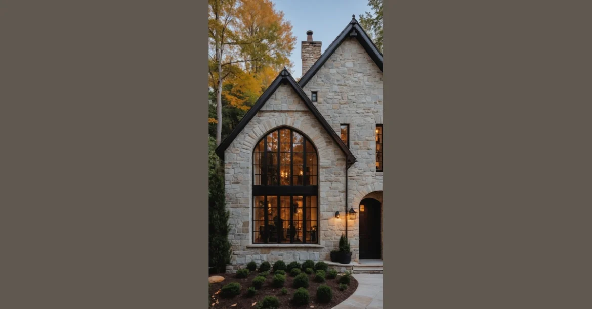 Look at this place! It’s like a classic castle decided to get a super trendy makeover and is now ready for its close-up. You know how Tudor homes usually have that cool, old-school vibe that makes you think of fancy historical stuff? Well, this one clearly got the memo, but then decided to add a gigantic, jaw-dropping arched window that basically screams, “Come on in, the Wi-Fi’s great and the views are even better!” It’s got all the sturdy stone walls and cool gables of a traditional Tudor, but with a modern twist that lets in all the awesome light and gives it a fresh, inviting feel.