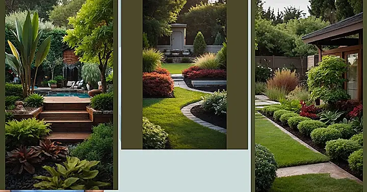 This backyard is like a scene straight out of a magazine! It’s got all the cool, modern touches: smooth stone paths that wind through the lush green grass, making you feel like you’re walking on a secret, hidden trail. And look at those awesome plants! They’re all different shapes and colors, like a bunch of happy little aliens who have come to chill out in your backyard. You could totally imagine having a relaxing picnic here, surrounded by the beautiful scenery and the sound of nature.