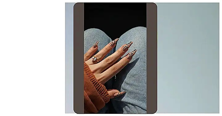 Whoa, check out these nails! If you’ve ever wanted to subtly declare your love for woodland creatures or just confuse your friends into thinking you’re about to sprout antlers, these deer print nails are absolutely legendary. The delicate brown patterns on that soft, natural base totally scream ‘fashion meets forest ranger,’ but like, the super chic kind who probably has a secret cabin and a pet squirrel. You’ll be ready for a sophisticated stroll through the woods, or at least for pretending you just emerged from one looking fabulous and totally on-trend.