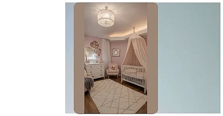 While this place looks super peaceful and totally Instagram-ready, let’s be real, a newborn is probably less impressed by the adorable string lights and more focused on whether they need a fresh diaper, like, five minutes ago. That beautiful crib is probably just the future stage for midnight concerts, and that gorgeous, fluffy rug? It’s basically an absorbent landing zone waiting for its first questionable mess. But hey, at least it’s cute enough to make everyone forget about the chaos for a minute!