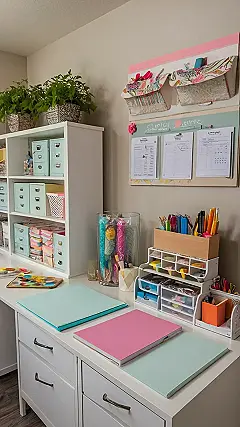 This craft room office is so organized it’s almost suspicious. It looks like the kind of place where ideas magically transform into perfect Pinterest projects, and homework somehow finishes itself! Seriously though, imagine all the doodles, drawings, and slightly-off-kilter masterpieces that could come from this space. It’s like a blank canvas just waiting for someone to unleash their inner artist (or at least try not to make a huge mess).