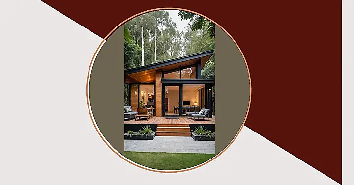 Forget those boring brick houses, because this place is giving us major dream house vibes! With its super sleek black exterior and that sharp, modern roof, it looks like it landed straight from a sci-fi movie, but totally cozy. And check out that fancy fire pit right outside – perfect for toasting marshmallows (or, let’s be real, just looking cool) while you pretend you’re camping in style, even though your comfy couch is just a glass door away. Who needs a backyard tent when you have this outdoor setup?