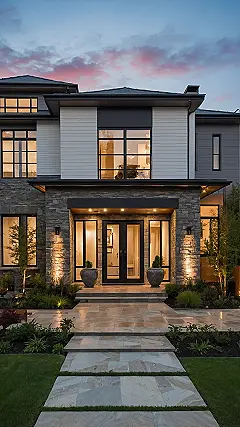 This isn’t just a house; it’s like a fancy castle decided to go modern. Look at those giant windows! You could probably host a professional staring contest with the moon from inside. The way the lights are on makes it look super inviting, like it knows you’ve had a long day and is ready to let you in for cookies and a nap on a ridiculously comfortable sofa. It’s the kind of place you see in beautiful house plans and immediately wonder if you can fit a secret passage somewhere behind the fireplace.