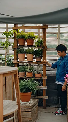 **Title:** Pottery Paradise: My Tiny, Thriving Garden Escape!