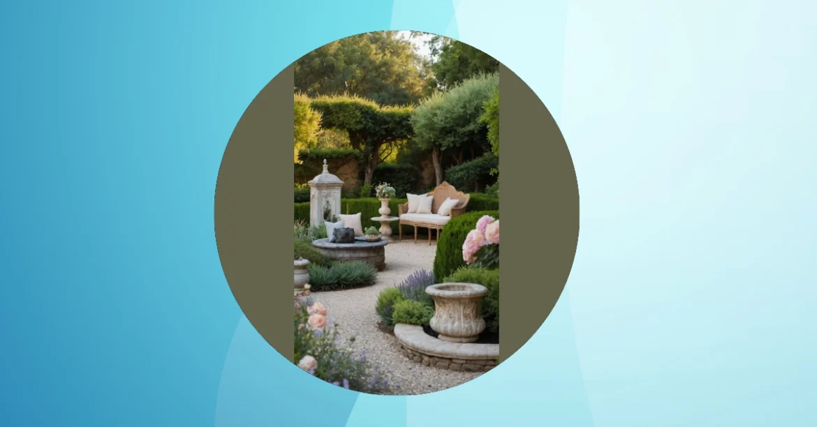 If my backyard looked like this, I’d probably spend all my free time out there, pretending I was a sophisticated French movie star instead of, well, me. That super inviting bench with the fluffy cushions practically begs you to kick back, maybe read a book, or just practice your ‘Mona Lisa’ smile. And let’s be real, walking on that pretty gravel path, surrounded by blooming flowers and the scent of lavender, feels way cooler than just walking to the fridge. Just try not to trip over your own feet while trying to look effortlessly chic!