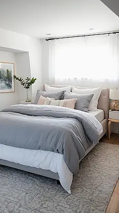 Stepping into this bedroom from the picture is like getting a giant hug made of blankets and good vibes. Look at that fluffy white cloud on the bed! It practically screams “cancel all plans, grab a snack, and sink into me.” If bedrooms had superpowers, this one’s would be making you instantly sleepy and way too comfortable to ever leave. You could probably hide from chores or homework under that amazing throw blanket forever and honestly, who would blame you?
