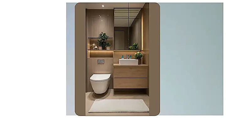 It’s all about chill vibes here. From the rolled-up towels that look way too fancy to actually use, to the mini plants trying to make us believe we’re outdoors, this bathroom is screaming “relax!”. I mean, who knew a toilet could look so…peaceful? If your bathroom looked like this, you might actually start looking forward to cleaning it, and that’s saying something.