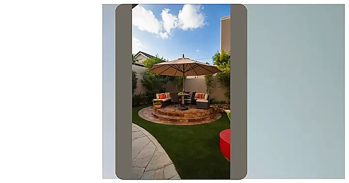 Forget boring desks and tiny screens – this backyard patio is basically begging you to throw an epic chill session! Picture this: a giant, super cushy sectional sofa piled high with pillows, just waiting for you and your squad to sink in. You could spend hours here gossiping, planning your next big adventure, or just trying to figure out that one math problem together. Plus, that sleek coffee table with its mini fire pit? Perfect for roasting marshmallows or just giving off those cozy, ‘I’m way too cool for school right now’ vibes. No more awkwardly standing around at parties when you could be relaxing in style right here.
