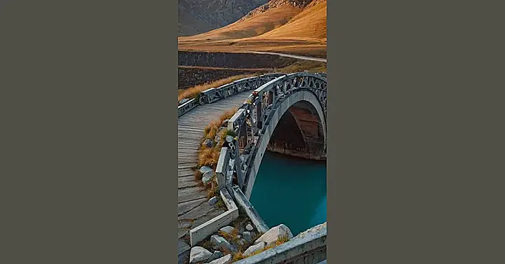 But even though it’s a bit rickety, the bridge is still pretty cool. It has a really cool, arched shape, and it looks like it’s leading to a hidden paradise. The turquoise water below it is just sparkling, and the mountains in the background make it feel like you’re in a different world. It’s definitely a bridge you’d want to take a selfie on, even if you’d rather not actually walk across it!