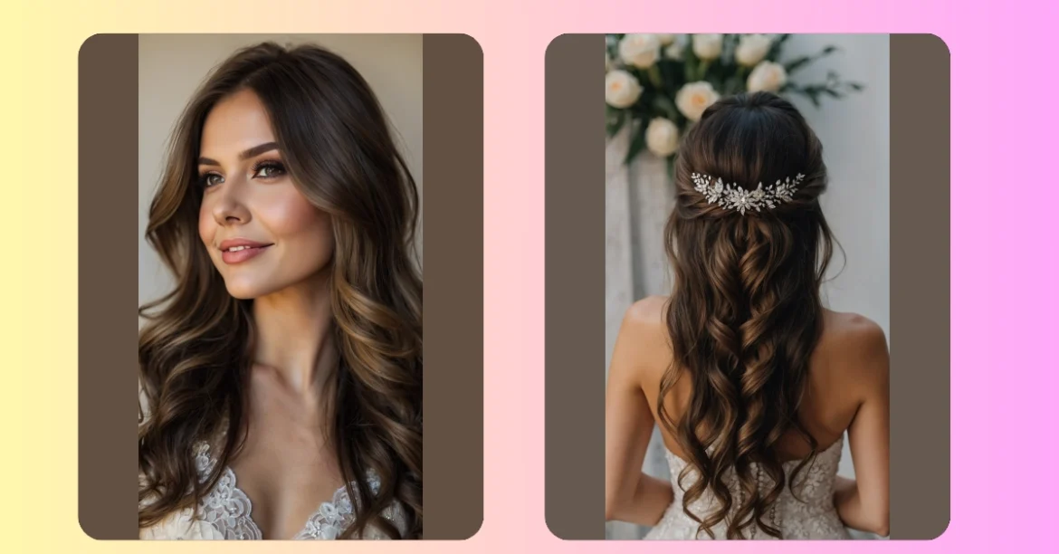 What if you’re all about that simple and chic style? A half-up look can be just right for you, balancing the best of both worlds. And, ladies with curls, don’t fret! Curly hairstyles can add magnificent bounce and texture, making for an iconic bridal look that’s impossible to ignore. Plus, these styles offer that effortless charm that looks polished without too much effort.