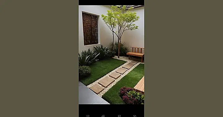 Forget about needing a sprawling estate; this garden is living proof that big dreams can fit into small spaces, even ones smaller than your average classroom. This design takes what could have been a forgotten corner – perhaps a sad spot for rogue dust bunnies or where socks went to retire – and transforms it into a total vibe. With its perfectly manicured grass, those cool stepping stones, and even a cozy bench, it’s basically an invitation to chill, read a book, or just admire how much awesome can be packed into a compact area. It’s like magic, but with more plants and fewer rabbits in hats.