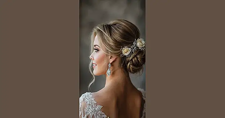And can we talk about that hair bling? That sparkly, snowflake-looking hairpiece is like the cherry on top of this already fabulous hair sundae. It just screams “special day” without being too much, catching the light like a secret admirer. Paired with those equally sparkly earrings, it’s clear this bride is ready to shine brighter than a disco ball at a school dance. Plus, that happy smile? Totally completes the picture, proving a great wedding updo isn’t just about the hair, it’s about feeling awesome and ready to celebrate.