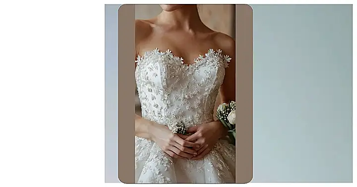 And can we talk about those incredible 3D blooms hugging the waist? They’re like a super fancy, fluffy flower belt, making sure everyone knows you’re ready for your close-up. If you wore this, you wouldn’t just be walking down the aisle; you’d be practically floating, probably leaving a trail of pure floral fabulousness wherever you go. This dress is so next-level, it probably comes with a disclaimer: “Warning: May cause excessive gasps of admiration and spontaneous bursts of applause.” Forget blending in; this dress is all about being the most unforgettable, blooming superstar in the whole room!