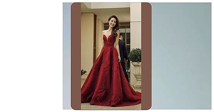 Wow, check out this dress! It’s like a fairytale come to life, but instead of a princess, it’s a total rockstar bride. That gorgeous burgundy color is perfect for someone who wants to make a statement – it’s way more exciting than plain old white, right? The lace details are super fancy, and the whole thing looks like something a celebrity would wear to an awards show. Imagine the photos! Forget finding a prince, you’ll be stealing the show in this stunning, new bridal dress design.
