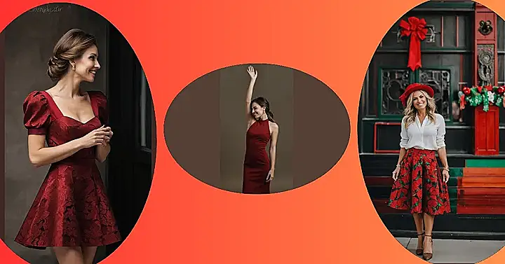 That dress is seriously festive! Imagine rocking this gorgeous maroon number at your Christmas party. It’s like a Christmas miracle—the perfect blend of comfy and chic. Those puffy sleeves are adorable, and the little floral print adds just the right touch of holiday cheer without being too loud. It’s so pretty, you’ll be the belle of the ball (or the Christmas tree!). Finding the perfect ladies’ Christmas outfit for 2024 just got a whole lot easier!