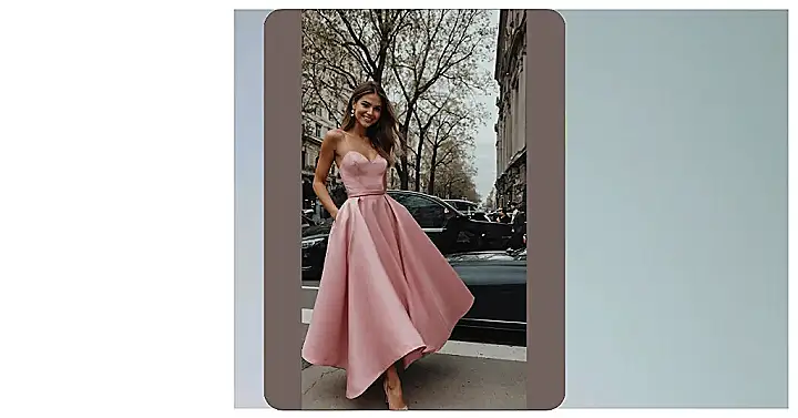This super pretty pink dress is totally ready for a fancy night out, or maybe just a really stylish trip to the grocery store if you’re feeling extra! That gorgeous soft pink color and the way the fabric just flows makes it look like it belongs on a red carpet, but our friend here is rocking it with a huge smile on what looks like a regular street. It takes the idea of a “women evening dress” and makes it look less like a stuffy obligation and more like pure fun, the kind of dress that probably makes you want to do a little twirl just to see it move.