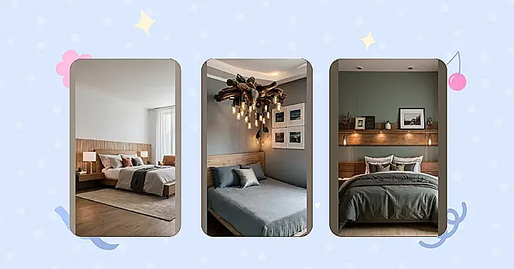 And can we talk about that chandelier? It’s like a bunch of fancy alien jellyfish decided to throw a party on the ceiling. Seriously, it looks so extra, but in a good way! It just shows you how much you can play with lighting and textures to make even a simple bedroom feel like something out of a magazine. If my bedroom looked like this, I’d probably never leave!
