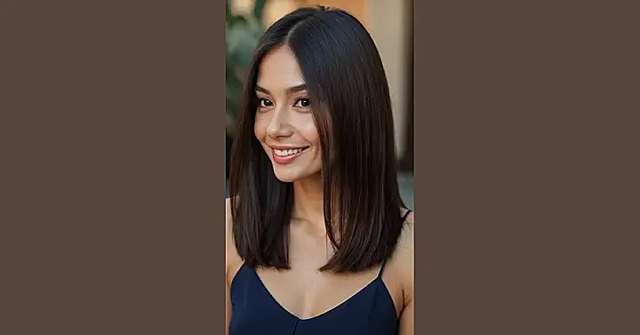 This woman is rocking a seriously sleek hairstyle! Her hair is so smooth and straight, it practically shines like silk. It’s like she just stepped out of a hair commercial, but with a more natural and effortless look. And with that bright smile, you’d think she just got the best news ever!