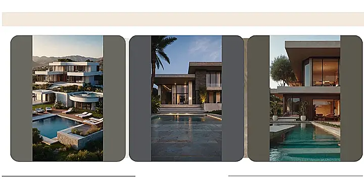 This villa is seriously cool! It’s got this modern, sleek vibe that makes you feel like you’re in a movie. It looks super chill and relaxing, with tons of windows for letting in the sunshine and maybe a little pool for dipping your toes in. The house is perched on a hill with a view of the mountains, and the curved walkway leading to the front door is like something out of a video game. You can just imagine a superhero landing on the patio, right?