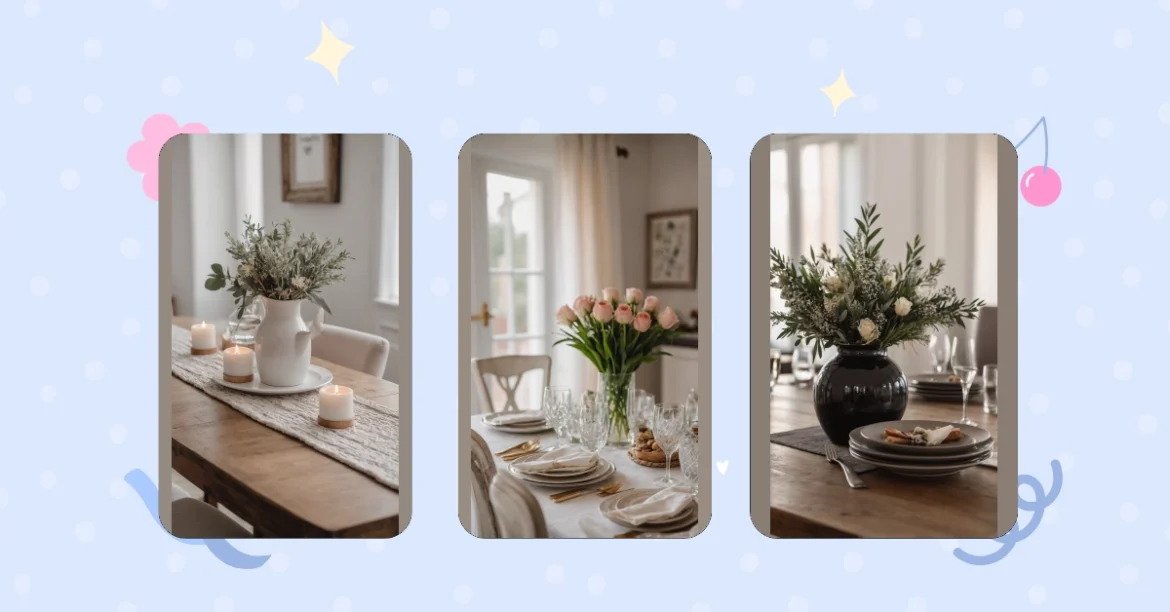 Making your dining table look decent with simple decor is surprisingly easy and makes eating way more fun than just grabbing a plate and standing in the kitchen. See how the one in the picture has a cool vase with some dried flowers? Little things like that add personality without taking up so much space you can’t reach the food. It’s all about adding a touch of nice without adding a pile of mess to clean up later. Your spaghetti will taste better, guaranteed (okay, maybe not guaranteed, but it’ll look fancier!).
