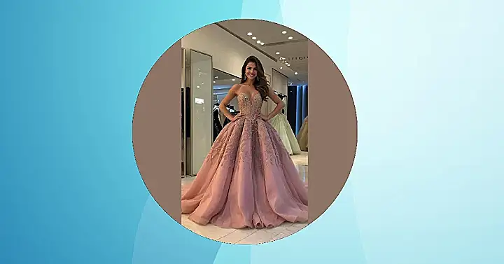 That dress! It’s like something a princess would wear to a super fancy party where they serve only pizza and ice cream – because even princesses deserve tasty treats! Seriously though, that dusty rose ball gown is unbelievably gorgeous. It’s all swishy tulle and sparkly details, perfect for feeling like a total queen (or maybe a very stylish pizza-loving princess).