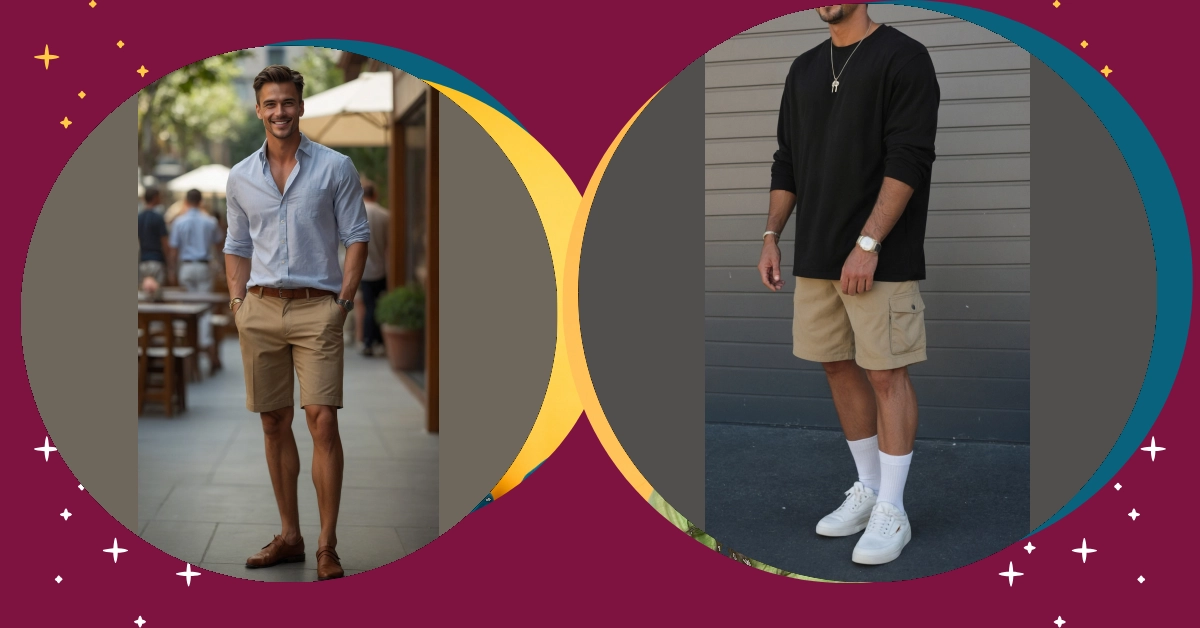 And let’s be honest, these aren’t your grandpa’s gardening shorts. This look proves that mens shorts can be effortlessly cool and sharp, perfect for anything from a casual hangout to pretending you’re an influencer. Paired with that stylish green shirt and crisp white sneakers, he’s absolutely nailing the ‘dressed-up but still ready to chill’ vibe. So next time you’re debating between looking good and feeling good, remember this guy: with the right pair of shorts, you don’t have to choose. Just try not to get too distracted by how awesome your legs look, or you might walk into a lamppost!