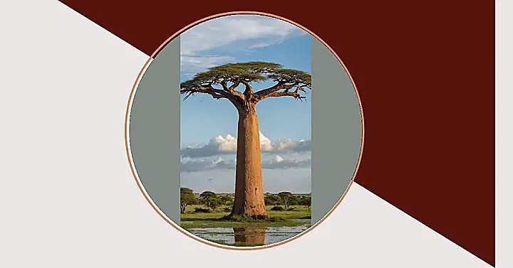 Down below, this giant is checking out its own reflection in the water, probably making sure its leafy hair is perfectly styled. It’s like the ultimate mirror selfie, only way more ancient and way cooler than anything you’d see online. This whole scene, from the fluffy clouds to the other tiny trees in the background, just screams “epic!” It reminds us how much amazing, funny, and uniquely beautiful stuff there is to discover when you really pay attention to the wild side of Africa.