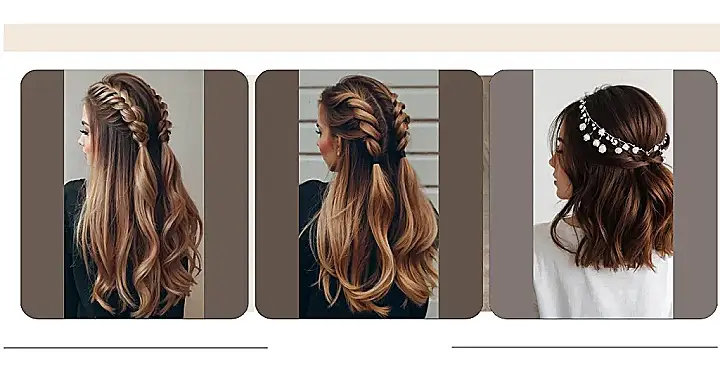 This hairstyle is so cute and soft, it’s like a flower crown came to life! It’s perfect for a special occasion, like a wedding, or just a casual day when you want to feel like a princess. The little white flowers look so delicate and pretty, and they make your hair look super bouncy and voluminous. Plus, it’s not too complicated, so you can definitely try it out at home!