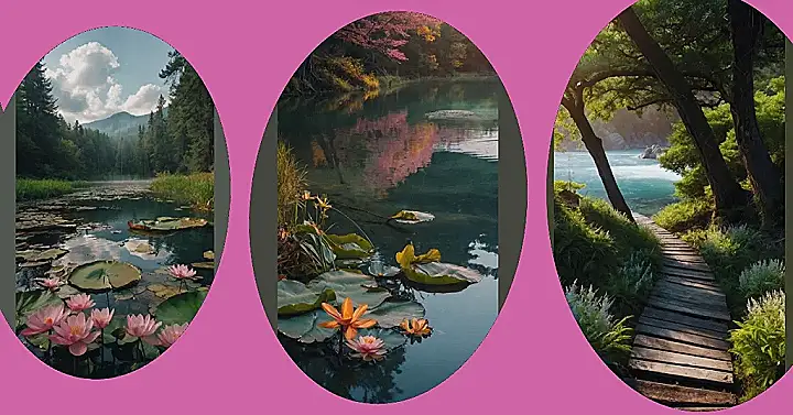 Imagine this: You’re chilling by a peaceful pond, surrounded by enormous lily pads that look like giant, green cookies floating on the water. Pretty pink and orange water lilies are blooming, adding pops of color like nature’s confetti! It’s so tranquil you could practically hear your own heartbeat slow down – that’s what we call a beautiful tranquil place! The water is so still it acts like a mirror, perfectly reflecting the gorgeous autumn trees in all their fiery glory. It’s like someone painted a postcard and then decided to make it real!