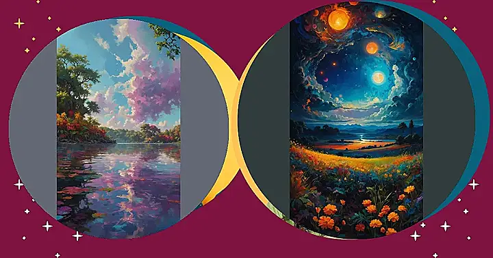 Feeling like your homework is out of this world? Check out this painting! It looks like someone spilled a whole bunch of oil paint and then decided to make a landscape, but forgot to check how many suns and moons should actually be in the sky. Like, is that three suns? Four? Are they having a party up there, or did they just lose their car keys and need extra light? This wild oil painting background is definitely not shy about throwing everything it’s got at the canvas, including a cosmic disco ball collection.