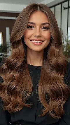 This isn’t your basic brown, folks! It’s got that extra “oomph” that makes you want to stop scrolling and say, “Wow, I need that hair in my life!” The waves are perfect, the shine is killer, and the color is so rich, it’s practically edible. You could totally rock this color at school, and everyone would be like, “Whoa, did you get a haircut?” And you can just smile mysteriously and say, “Maybe…”