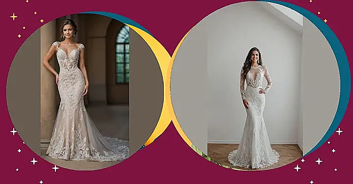Getting married is a huge deal, but picking out a mermaid wedding dress like this one makes it way more fun! This stunning gown practically screams ‘under the sea royalty,’ with its super fitted style that hugs the body before dramatically flaring out near the knees. You might feel a bit like a graceful mythical creature, ready to glide (or maybe do a fancy shuffle) down the aisle instead of walking normally. All that intricate lace and the sheer long sleeves definitely make a statement, proving you don’t need actual scales to sparkle.