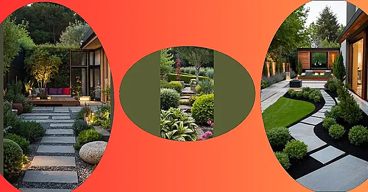 Designing a garden like this is all about being creative. Forget boring squares and straight lines. This place is rocking the unexpected with cool plants, a fun pathway, and a little wooden hangout spot that looks like the perfect place to sip some lemonade. It shows that your backyard can be more than just grass; it can be a work of art.