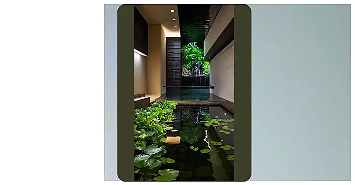 Imagine this: You’re walking through a building, and suddenly you see a little pond! Not just any pond, though. This one is inside, tucked away in a corner like a secret treasure. It’s got these cool, curvy edges, and the water is so clear you can see right to the bottom. And, get this – there are actual fish swimming around in it! Like, real, live fish! It’s like they decided to ditch the outdoors and hang out in this fancy, indoor oasis.