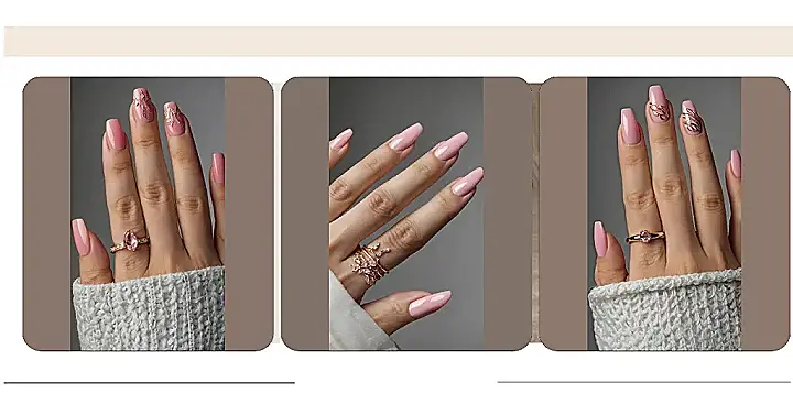 Honestly, who needs traffic-stopping hot pink when you’ve got nails that look this good and still let your sparkly rings take center stage? These aren’t just nails; they’re a whole mood. They’re saying, ‘Yeah, I’m stylish, but I also know how to chill.’ They’re perfect for mastering your TikTok dances without distracting from your moves, or for holding a fancy coffee cup while looking effortlessly chic. So next time you’re thinking ‘hot pink or bust,’ remember these beauties. They’re living proof that sometimes, the ‘less loud’ option is actually the coolest one in the room – and way less likely to clash with your new neon sneakers!