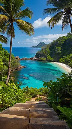 This photo screams “take me away from algebra!” Seriously, who wouldn’t want to ditch homework for a stroll down those stone steps and a dip in that ridiculously blue water? It’s like someone cranked up the saturation on real life. You can almost feel the warm sand between your toes just by looking at it.