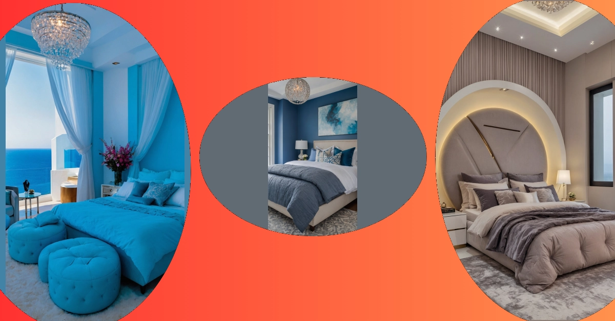 But the blue party doesn’t stop at the walls! Your eyes are then treated to the comfiest-looking bed ever, piled high with fluffy white and various shades of blue pillows, making it an irresistible invitation to flop down. And don’t miss that super cool, sparkly chandelier overhead – it looks like a fancy, glowing planet, adding just the right amount of sparkle to the deep blue backdrop. Even the abstract art piece on the wall joins the fun, swirling with more blues and whites, ensuring you’re truly surrounded. This isn’t just a bedroom; it’s a stylish, serene escape where you can totally embrace your inner calm, making those “moody” moments feel more like a mini-vacation.