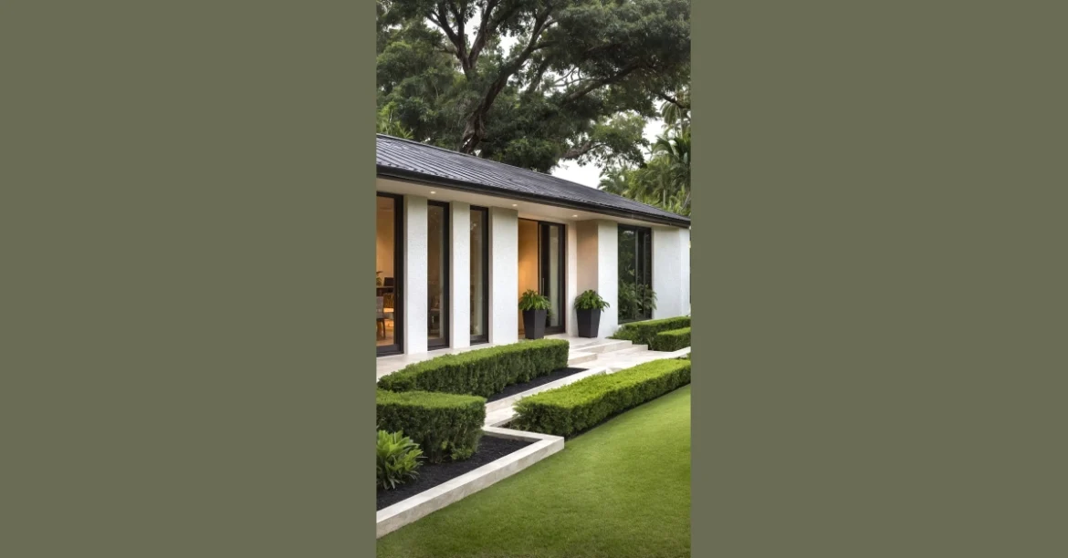 And let’s talk about that lawn – it’s so perfectly manicured, it probably has its own Instagram account with more followers than ours! Those super neat hedges look like someone ironed them, making sure every leaf is exactly where it should be. It makes you wonder if they have a robot butler that just mows and trims everything while you’re still dreaming. This kind of tropical house design really connects you to nature, but in a ‘I’m chilling on my perfectly green carpet, not actually wrestling a jungle vine’ kind of way. It’s definitely a place where you could pretend you’re on a fancy vacation, even if you just rolled out of bed to grab a snack!