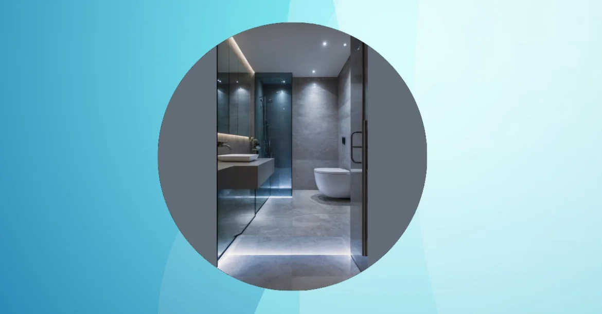 This bathroom looks less like a place to rush through your morning routine and more like a secret high-tech spa! With those sleek gray tiles everywhere and the subtle glowing lights under the floating vanity and along the floor, it’s giving off some serious futuristic vibes. Forget your old shower curtain; this place is all about crisp glass and a toilet that looks like it could have its own smart assistant. It’s so incredibly clean and modern, you’d almost feel bad making a mess in it!
