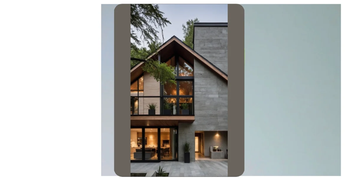 With those massive windows and the warm glow from inside, you can practically picture yourself chilling on one of those sleek couches, probably pretending to do homework. The way the cool stone walls blend with the warm wooden panels makes it feel both super modern and incredibly cozy, like it’s saying, “Welcome home, but also, please don’t touch anything sticky.” Honestly, if this were my dream house, I’d probably get lost trying to find the kitchen, but at least I’d have a ridiculously stylish background for all my video calls.