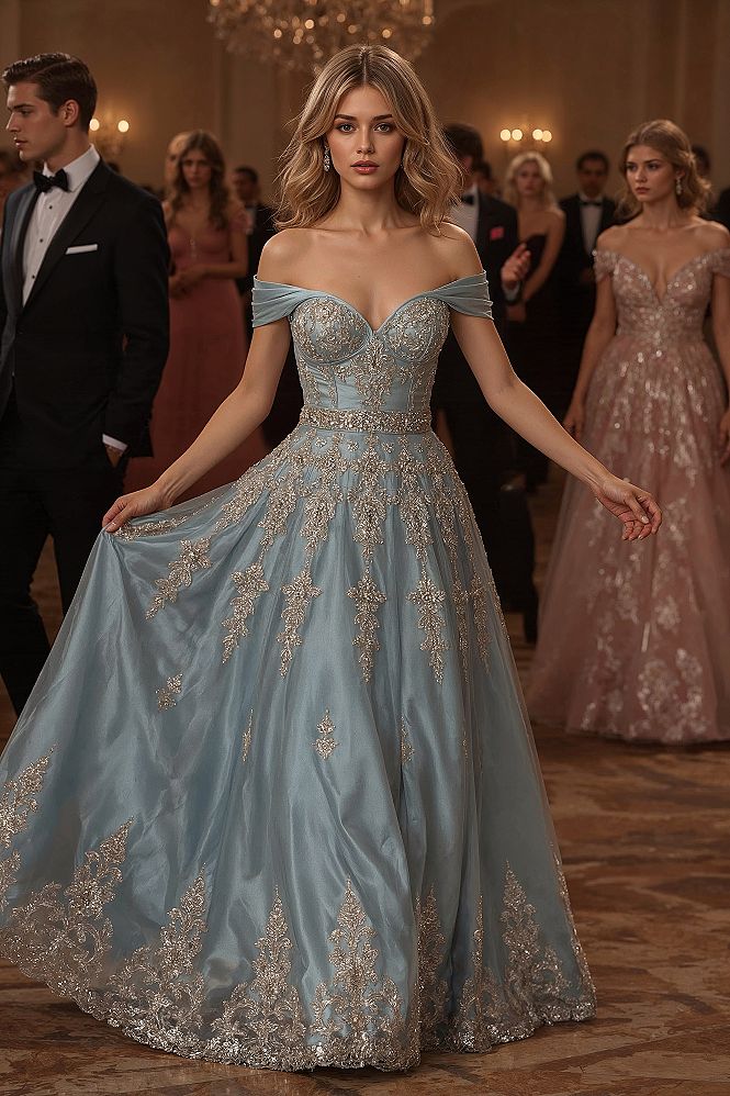 Envision your special day in a dream wedding venue indoor, dancing like royalty in this Royal Ball Prom Dress, where the intricate corset bodice and flowing skirt make any bride feel like a queen.